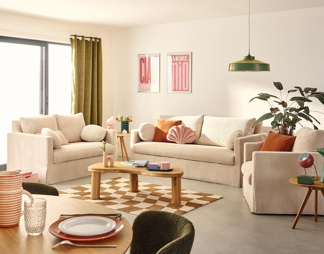 Corduroy in sand, washed ivory linen, ecru boucle: the materials subtly texture the space. The shades are natural, muted, enveloping. Some models incorporate invisible storage, while others offer modular configurations to adapt to all changes in the space. An approach that is both aesthetic and intelligent regarding comfort.