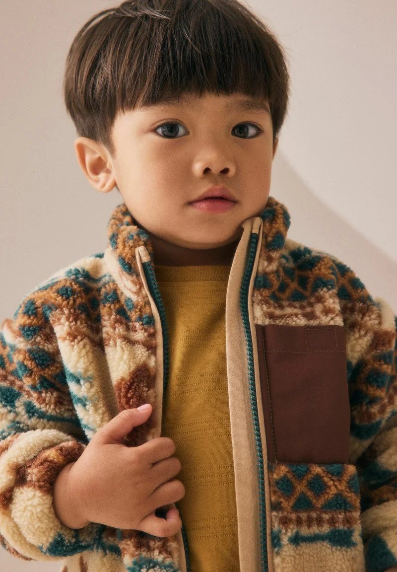 Among the dominant shades, warm browns assert themselves naturally. Soft chocolate, hazelnut, cinnamon, patinated terracotta: these hues evoke soil, wood, thick wool, winter landscapes stripped of greenery. They immediately warm a child’s silhouette without ever hardening it, provided they are paired with simple cuts and breathable materials.
